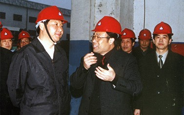 > 2002年12月,時任浙江省委書記習近平考察調研金洲管道生產(chǎn)基地。